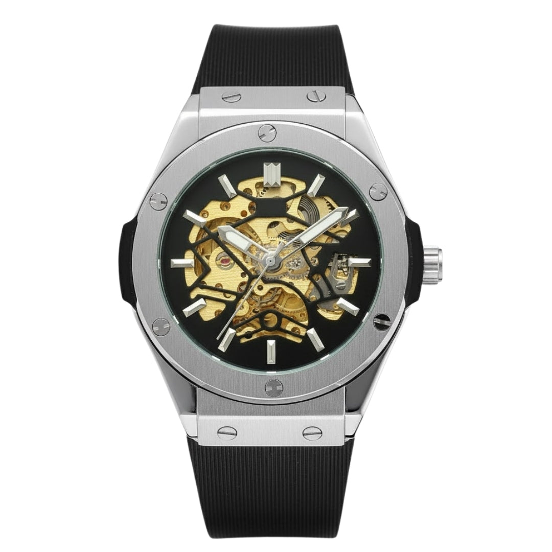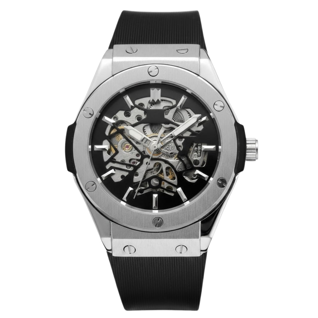 L’Apex Skeleton incarne l’horlogerie d’exception dans toute sa splendeur. Son mouvement apparent, délicatement ajouré, dévoile un ballet mécanique hypnotisant, reflet d’un savoir-faire maîtrisé et d’une esthétique résolument haut de gamme. Le boîtier en acier, sublimé par ses finitions impeccables, s’harmonise avec un design contemporain qui impose naturellement sa présence. Élégante, rare et affirmée, l’Apex Skeleton n’est pas seulement une montre : c’est une pièce de prestige pensée pour ceux qui recherchent l’excellence jusque dans les moindres détails.